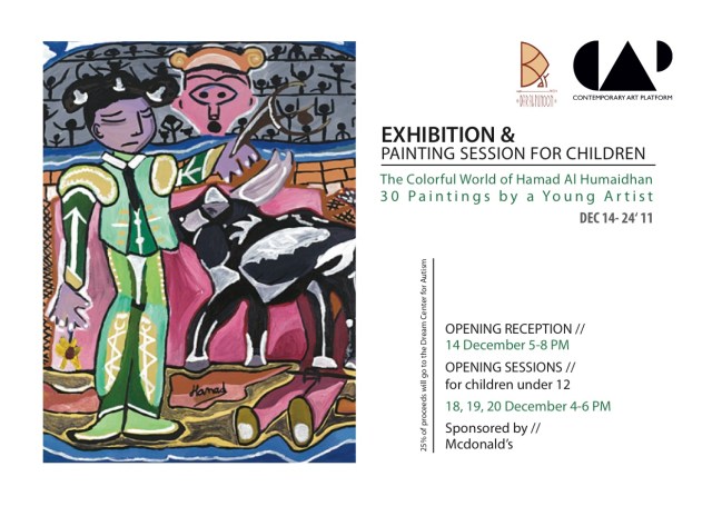 What: (The Colorful World of Hamad Al Humaidhan) is a solo exhibition of Kuwaiti artist Hamad Al Humaidhan, 12 years old, featuring 30 paintings of the young artist.