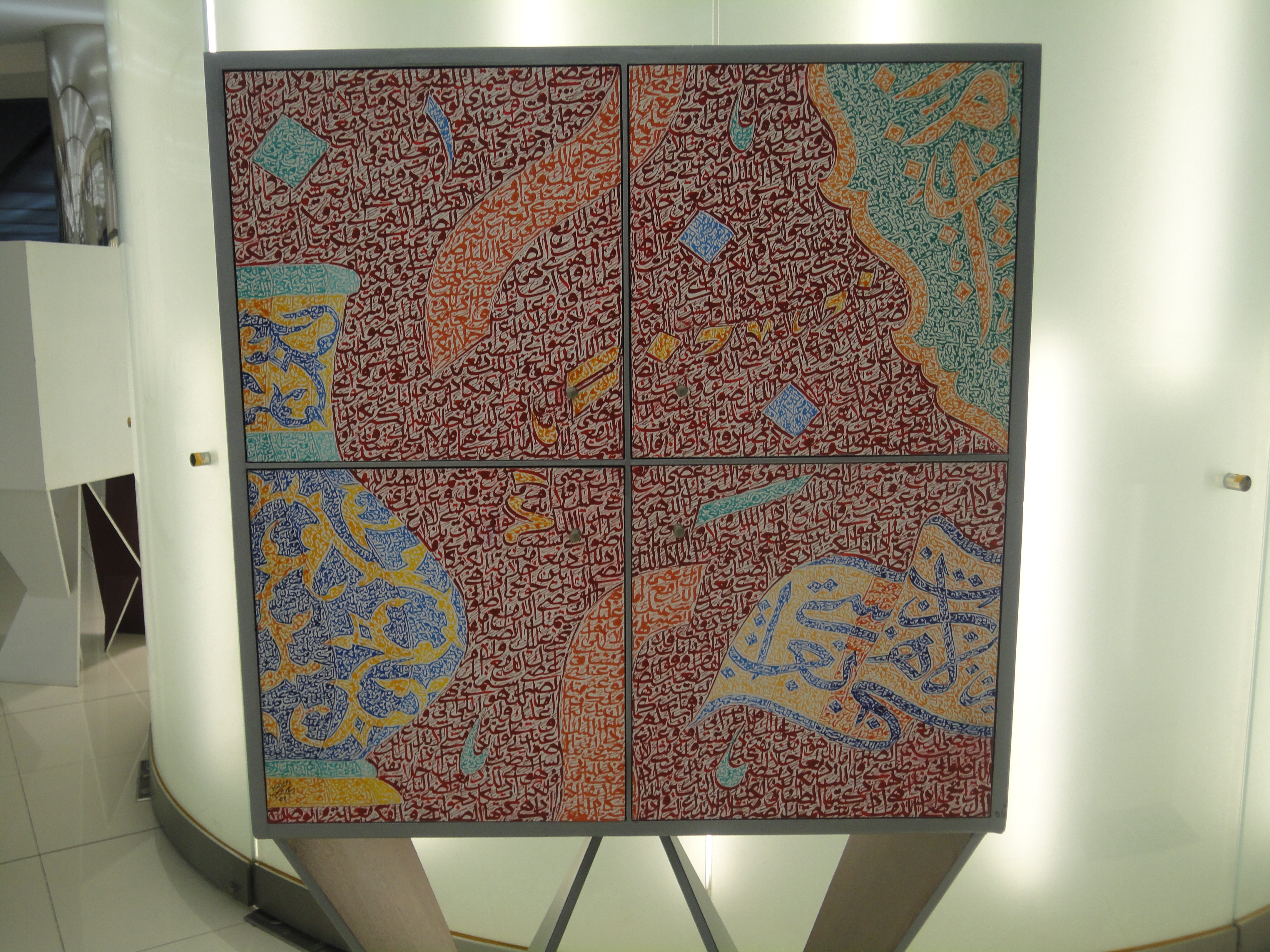 The artworks varied between paintings, furnitures and installations of calligraphic pyramids by Algerian artist Hamza Bounoua & painted, calligraphic car by Lebanese artist Abed AlKadiri.