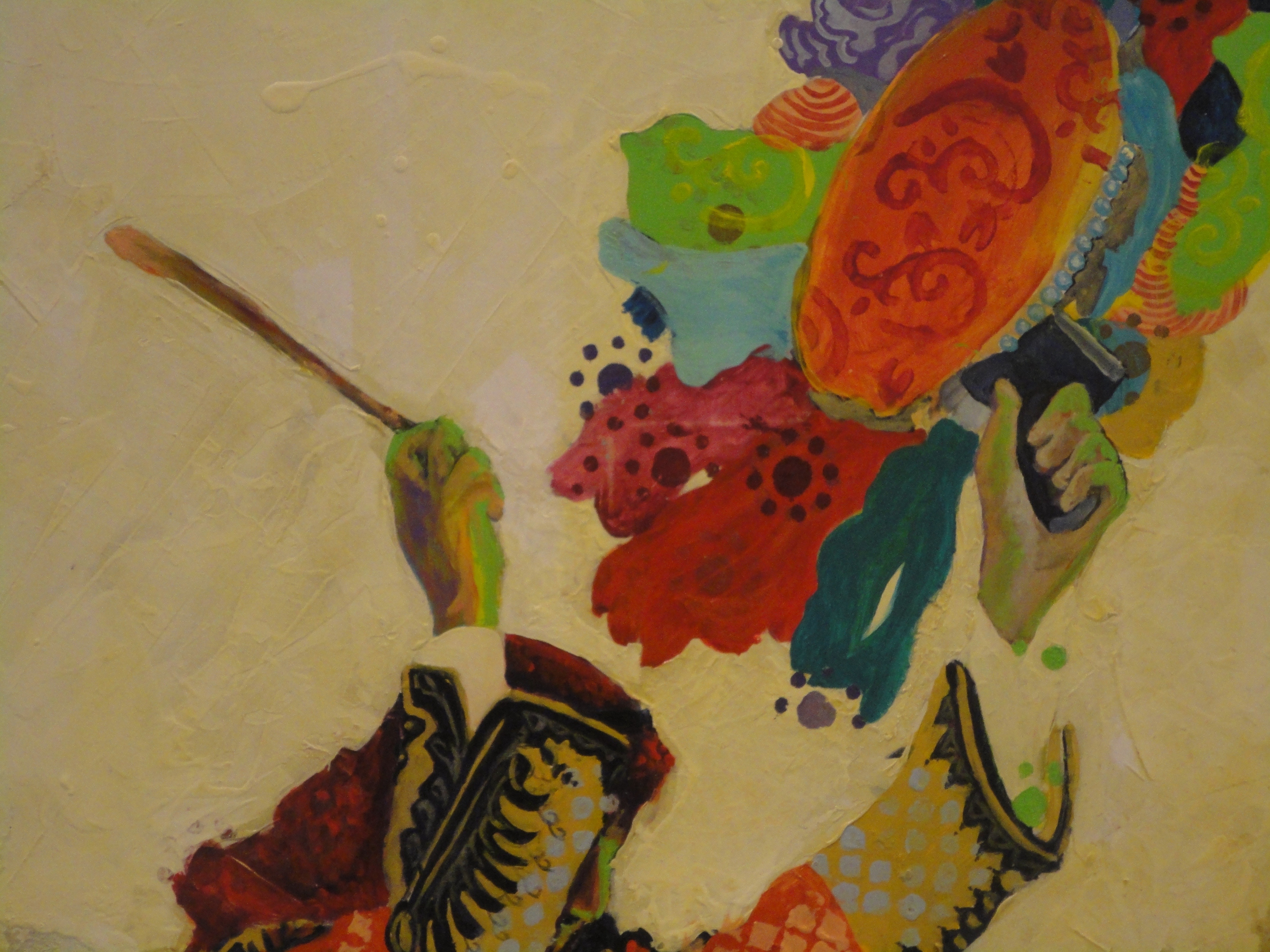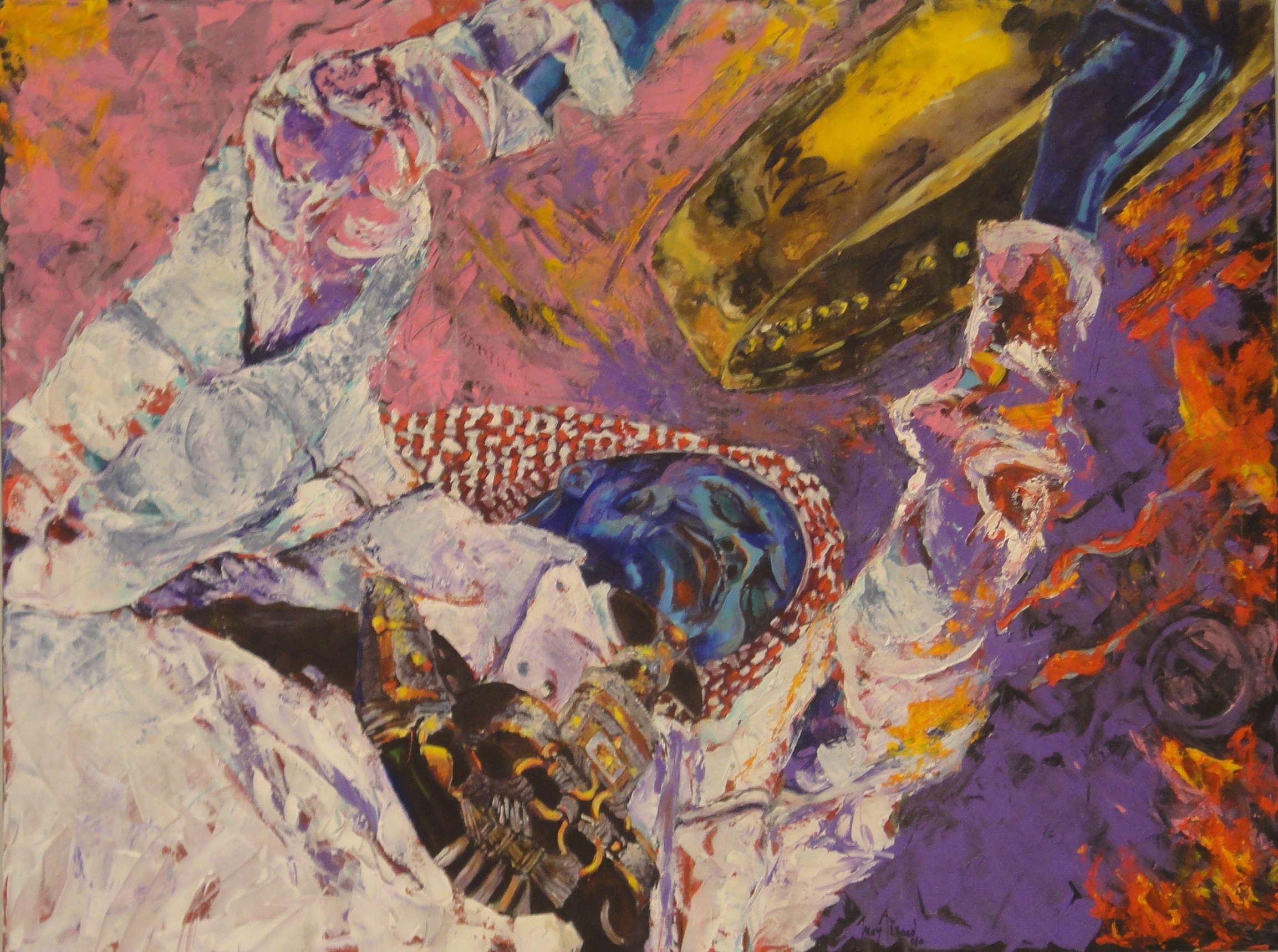 May’s true artistic focus of capturing movements and beats came into life with her project (The Sound of Color and the Beat of Life) where she began painting folk dances of the region on her canvases.