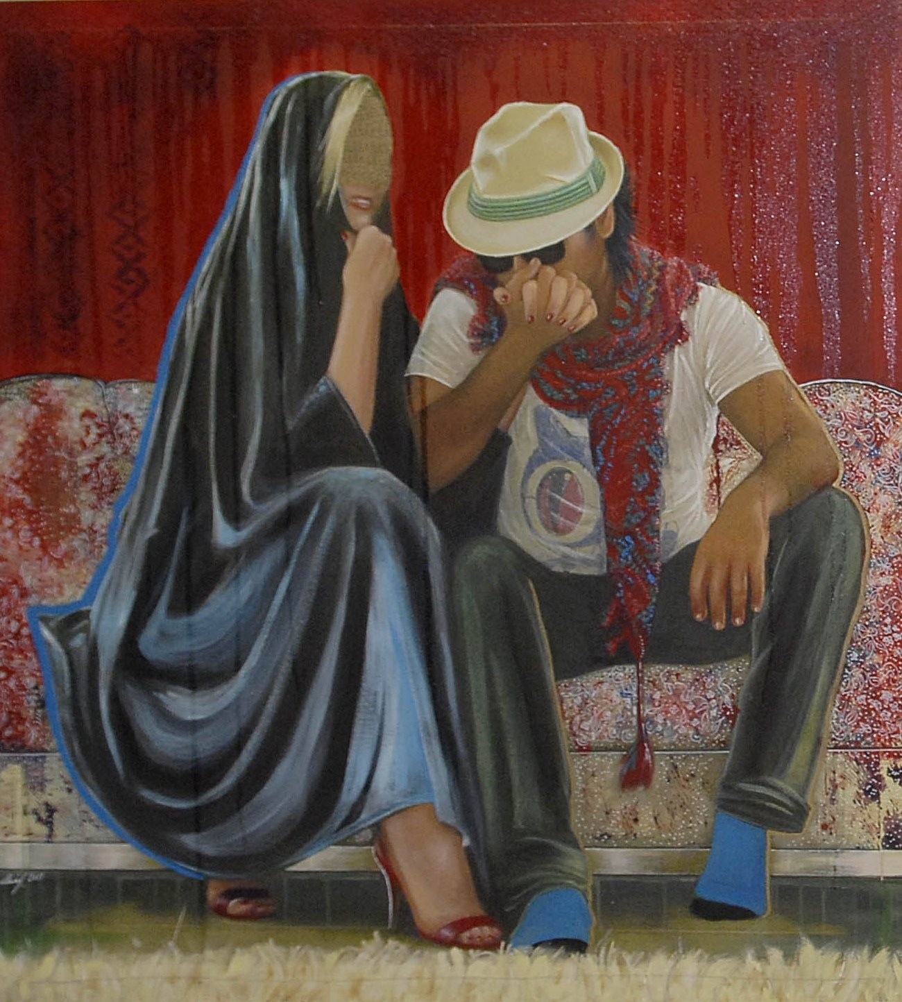 What? the long waiting solo exhibition of Kuwaiti multi artist Shurooq Amin is finally here! (It’s a Man’s World) focuses on the “untouchable” and “non-debatable” topics related to Men. An unveiling on hypocrisy as well as a celebration of man and life.