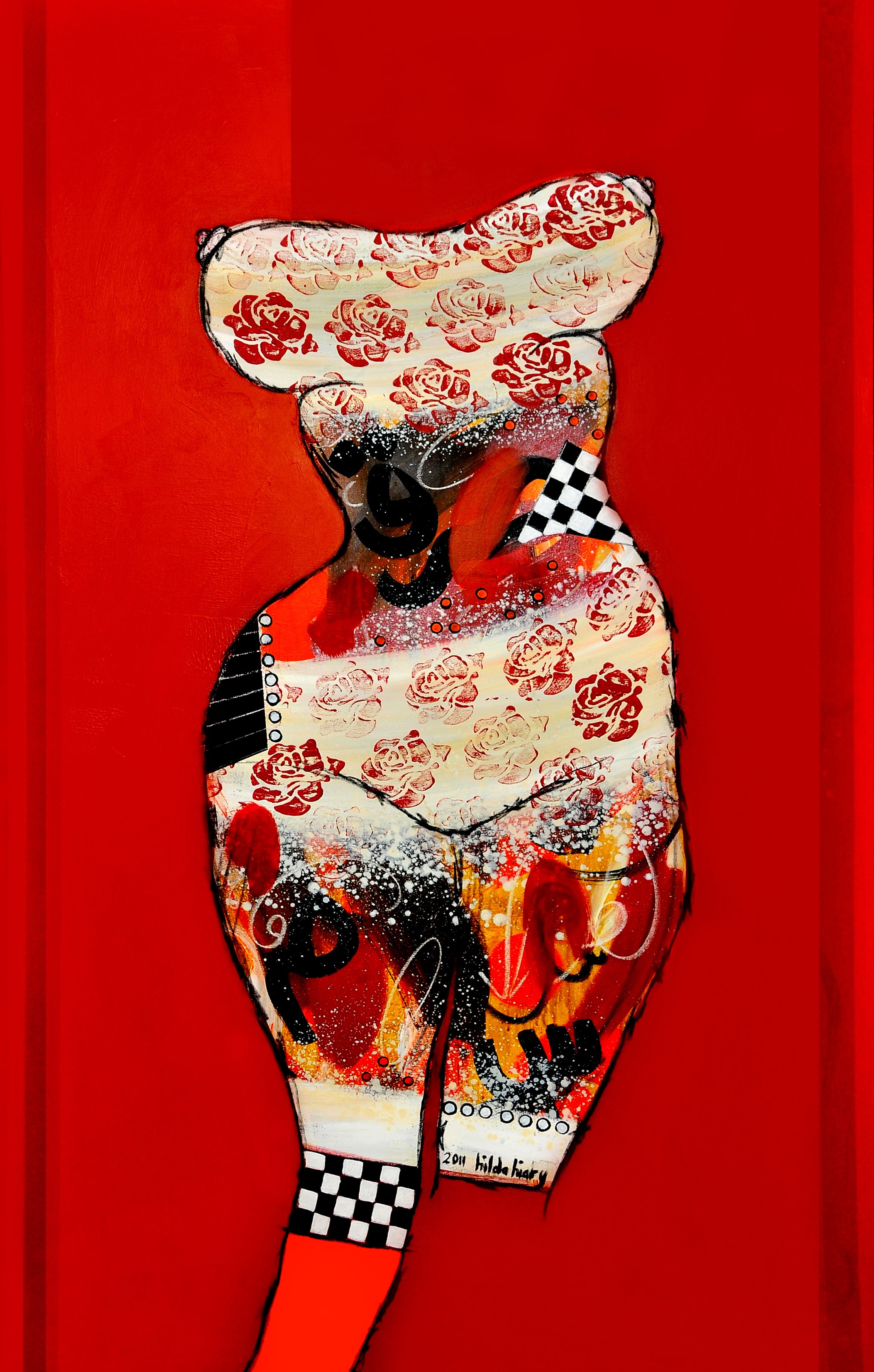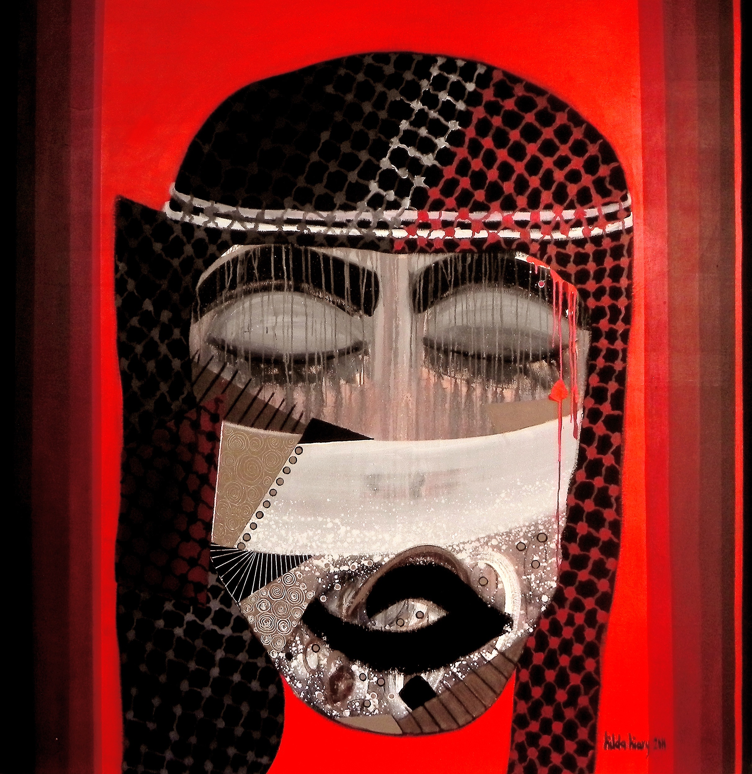 Another element in Hilda’s paintings that I love is although some are very obvious, there is something mysterious! She is trying to deliver hidden messages that keeps you wondering! What does she mean with ‘Tarboosh’? Is she trying to show men supreme on women?! Or is she a woman dressed as a man?! Why is there a cut body in ‘Follower’?! And who is following who?! In ‘Spit’ who is he/she spitting at, the media or leaders or false promises of both?! And in ‘Determination’ with one leg and no arms, obviously she is strongly determined to reach her goals. The mysterious element adds up to Hilda’s artworks, because every time you will look at them in different way. She is painting pain with beauty.