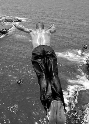 Besides exploring various social conflicts, the shown works deal with both the facets of the artists’ identities and the identity of a nation devastated by war constituting itself in a permanent dance on a volcano, epitomized in the virility of cliff divers jumping off Pigeons Rock in Randa Mirza’s photographies. The civil war from 1975 to 1990 and numerous armed conflicts have not only left deep traces on the cityscape, but also on Beirut’s inhabitants as Alfred Tarazi’s memorial paintings show. Conversations de Salon a feature realized by Daniele Arbid shows four nicely dressed ladies in an upper middle class living room who talk about fearful war sufferings and several other subjects in a strange tea party atmosphere, with a nonchalant casualness one could also talk about the weather. Lamia Joreige’s Full Moon summarizes a poetic quest for the almost too perfect beauty of the Beirut nights, where in every “day & night” environments doubtful and threatening events may occur at any moment …