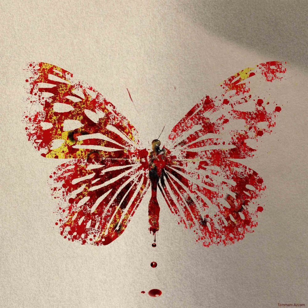 (Syrian Spring) is a new artwork by Tammam Azzam where he presents a butterfly filled with blood reflecting the reality of Syria’s revolution and spring that is different from any other Arab country. The Syrian Spring is the longest -since March 2011- and the bloodiest; thousands of people were killed and crimes against humanity are still happening as you read this post. But Tammam is optimistic on how the bloody situation in Syria will end, he cascades this with the butterfly and brightness in the painting regardless of the ugly reality and present, freedom is soon.