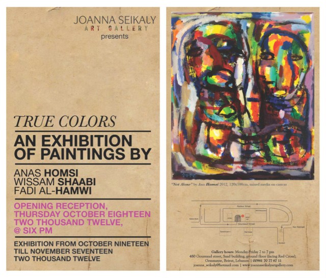 What: “True Color” A group exhibition by young Syrian artists Anas Homsi, Wissam Shaabi and Fadi Al Hamwi.