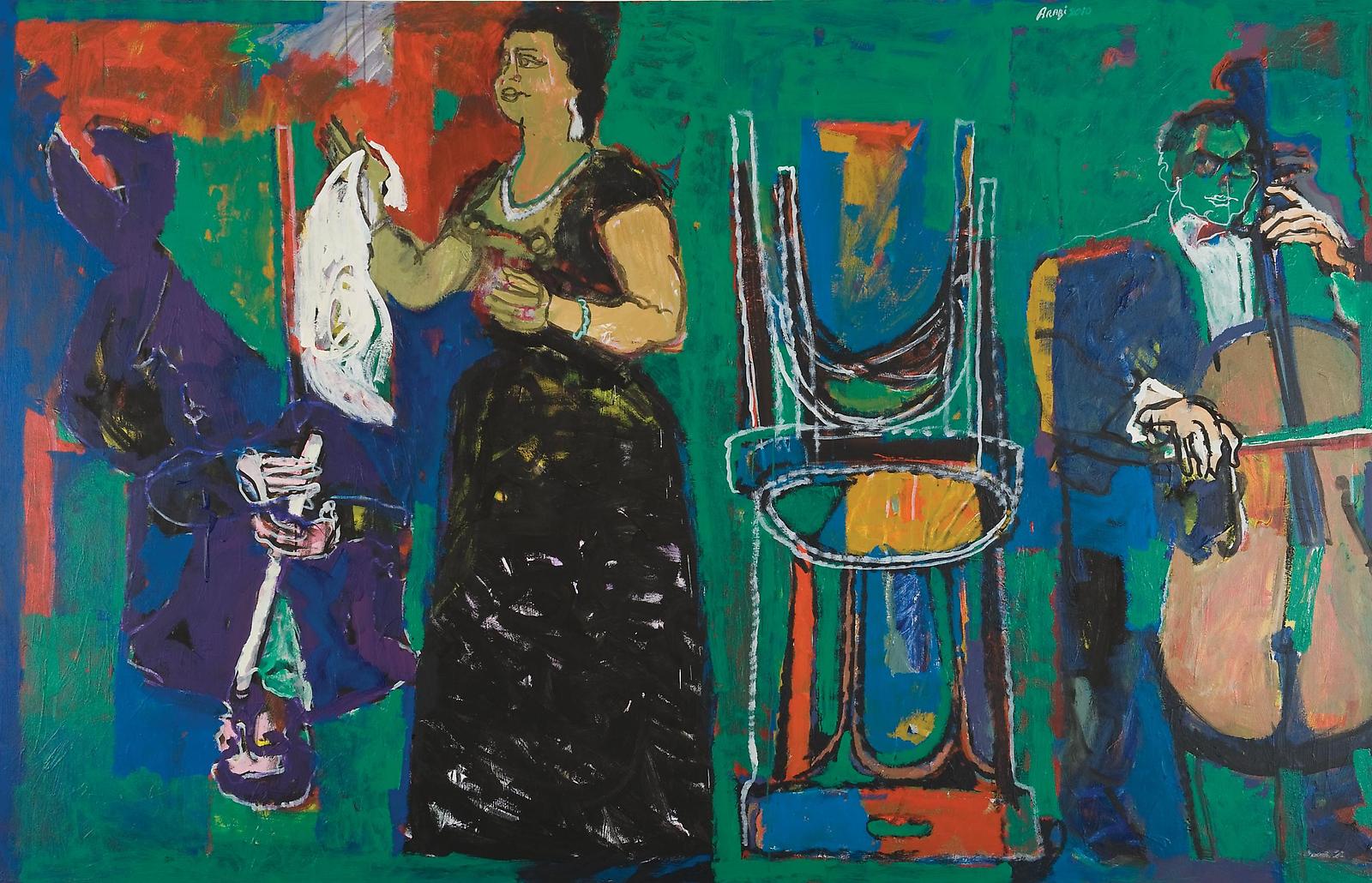 What: Following on from his previous series of work ‘Nostalgia’, shown at Ayyam Gallery DIFC, Dubai in 2011, for his exhibition at Ayyam Gallery Jeddah the artist revisits the subject of legendary Egyptian singer, Om Kalthoum. Arabi paints expressive portraits of her that both serve as a tribute to her talent and investigate the wider relationship between music and painting. Throughout his gestural work, he pays close attention to colour: bold strokes of vivid colour call to mind a conductor leading his orchestra through a powerful symphony, or a composer marking notes on a score.
