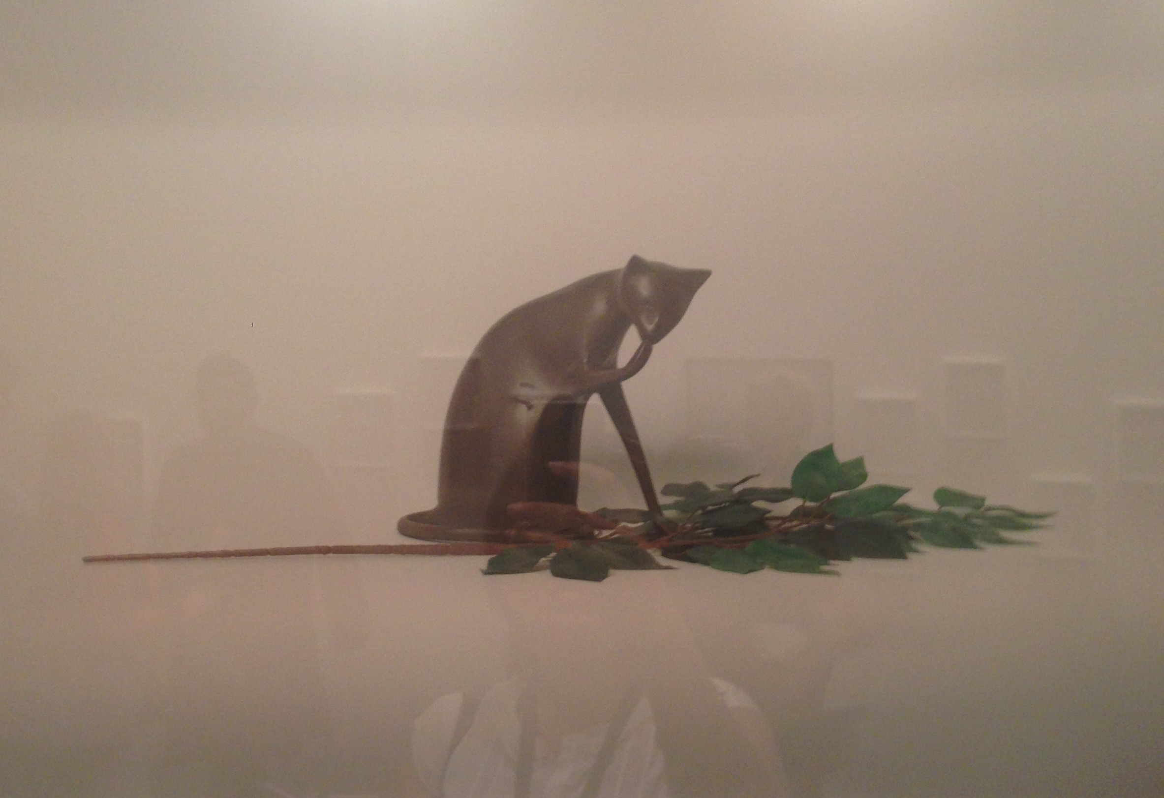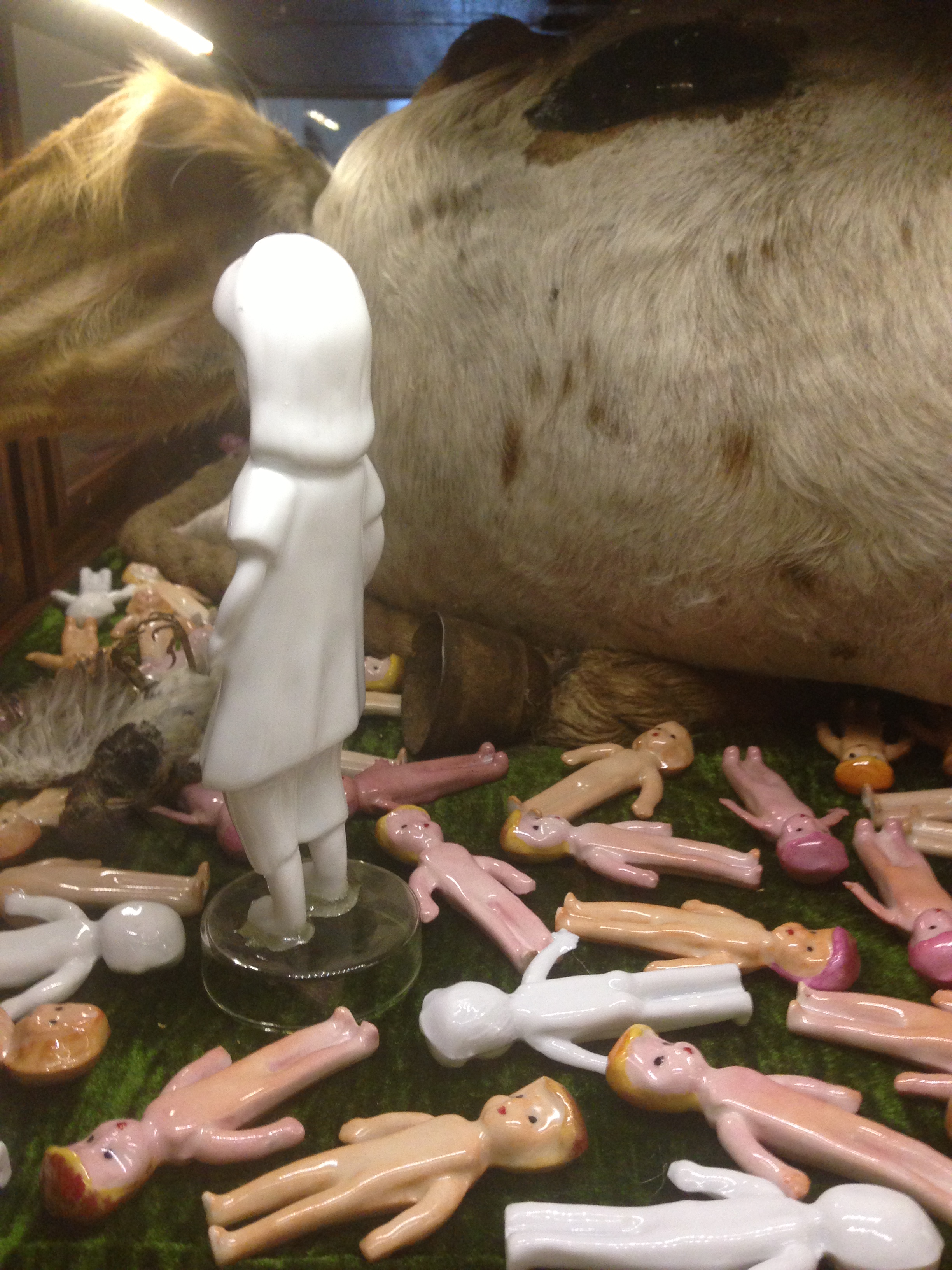 Huma Mulji 'The Miraculous Lives of This and That' Medium : Wooden cabinet, various objects including taxidermy animals, plastic toys and dust. Courtesy: Al Mahha Art Blog