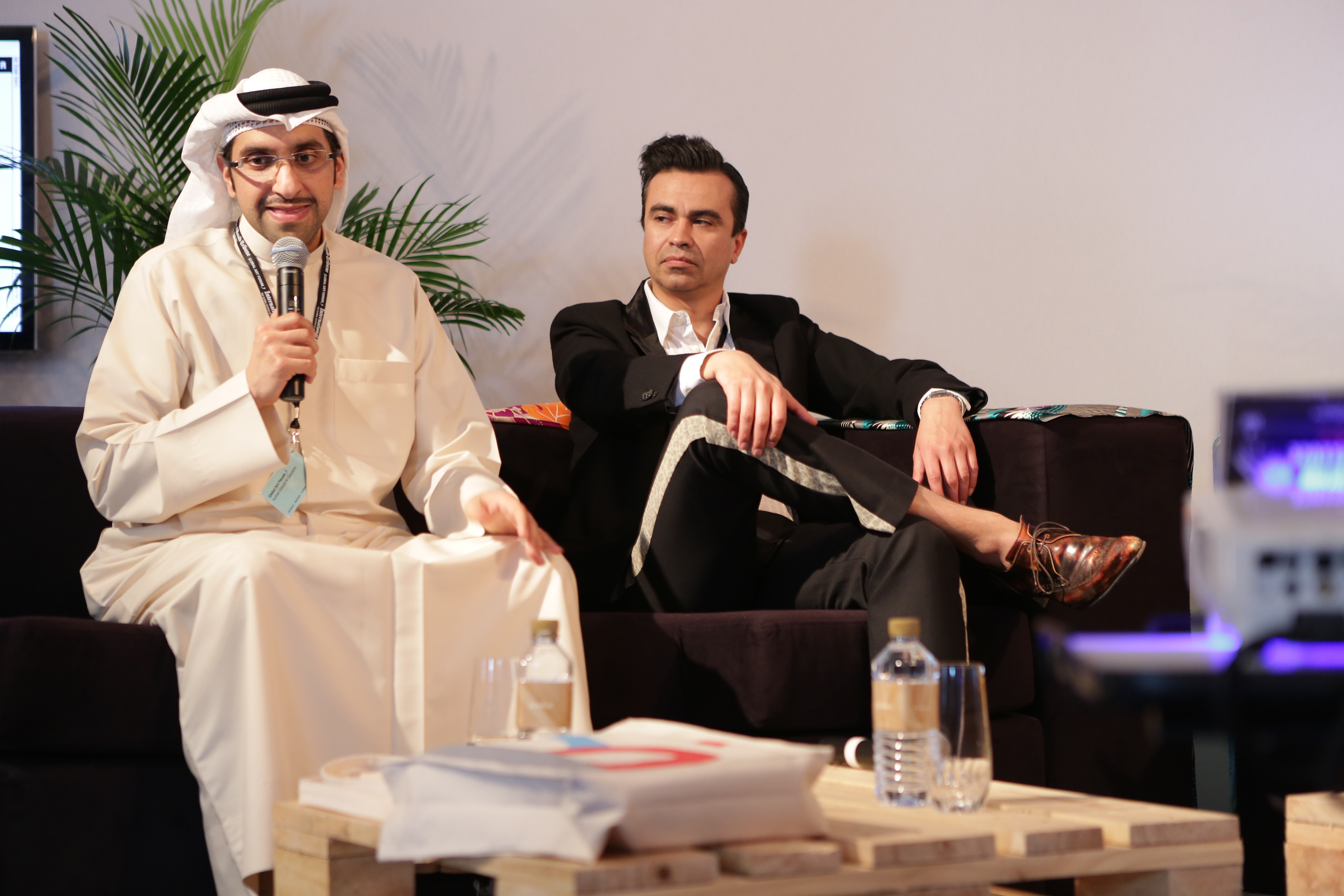 Sultan Sooud Al Qassemi, Oscar Guar speaking at Global Forum. Art Dubai 2013.