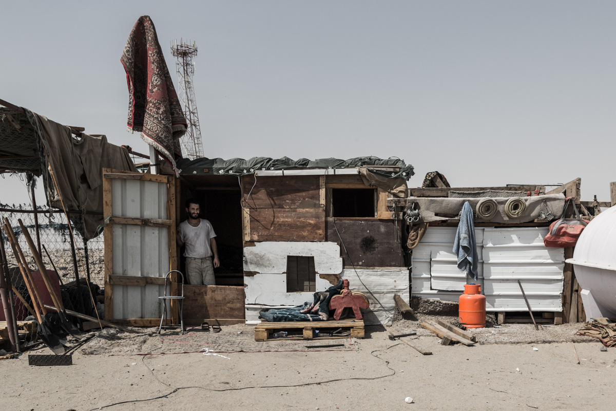 “My lens capture the houses of foreigner workers in Kuwait. The accommodation is either an old house or a four floor building built in 1960s – 1980s, varied from one to six rooms maximum where 4 to 10 men sleep in each, if they are lucky they have beds! They share the one toilet, kitchen and pay 25 – 30 KD monthly (approx. 70 – 100 USD) for accommodation and one meal a day, when salary of some is 40 – 70 KD or less. These men who came from different countries to have a job and guarantee a decent life to their families, work in different modest jobs. The set up of ‘Single Men Accommodation’ is random and could be found in residential or commercial areas in Kuwait, usually it is a block of old houses next to each other, most are surrounded with urban towers or houses some of these men built”.