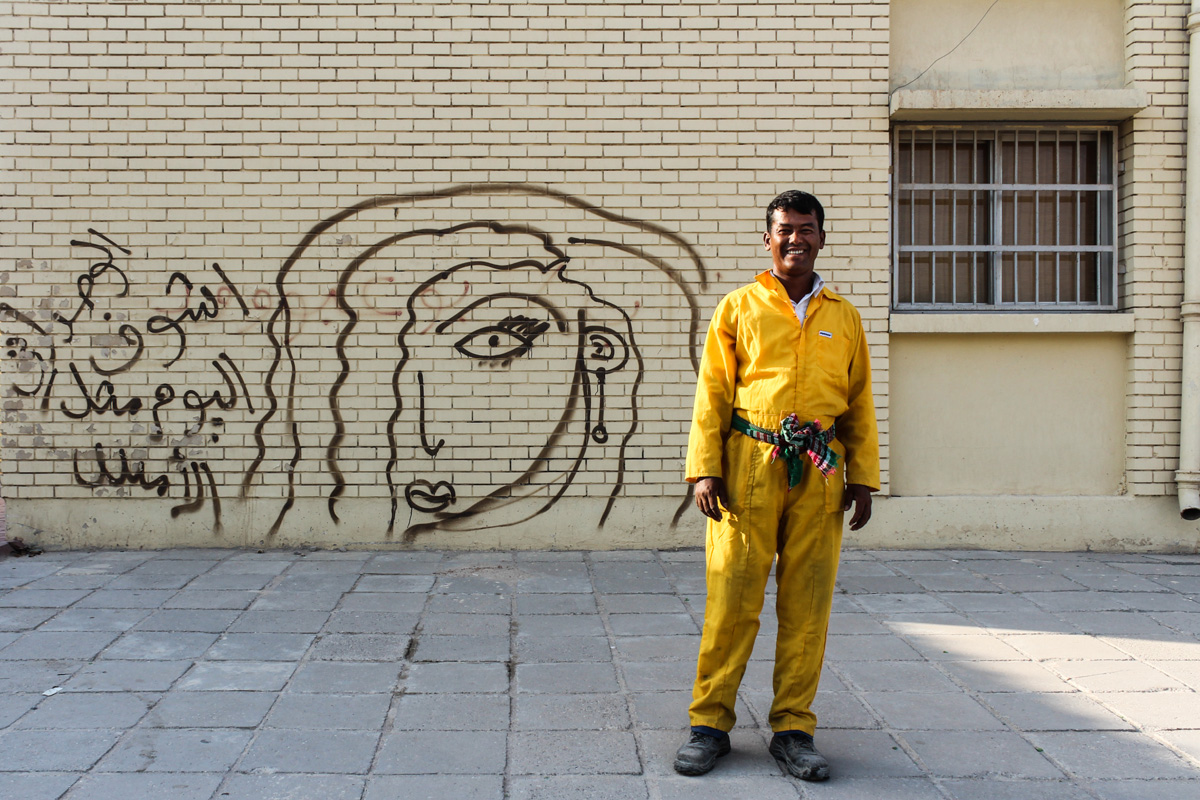 The young Kuwaiti photographer who started to grab people’s attention to not only on vulnerable street cleaners, but also random workers’ accommodation & lifestyle, deserted buildings & furniture, amateur street art and the homeless in Kuwait is Faisal Al Fouzan. I knew Faisal from art events & happenings in Kuwait, the first time I saw his photography was in 2012 at CAP 2 days photography workshops in Mubarkiya – old market in Kuwait – where all photographers were asked to create a storyboard from their pictures & later exhibit them in group show. My impression on Faisal’s work was it is simple, brightness of colors makes you feel good but you can’t pass without it leaving a trace… The only fear I had was he’d shift into commercial or typical photography of Kuwait’s architecture and scene of: beach, flying birds on seashore, ships & of course The Towers… Well he got me wrong & I am glad he did!