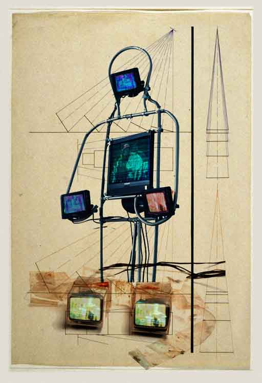 The two artists have come together on this project to create two creatures that interact with each other in a physical/mental space. Shirin Abu Shaqra assembles a portable mannequin whose parts come from found and recycled objects. The memory of this incongruous body is displayed on an integrated screen placed in its head. Ali Cherri mounts a tower of digital screens to form a figure: the image becomes a body, which in its turn becomes an image…