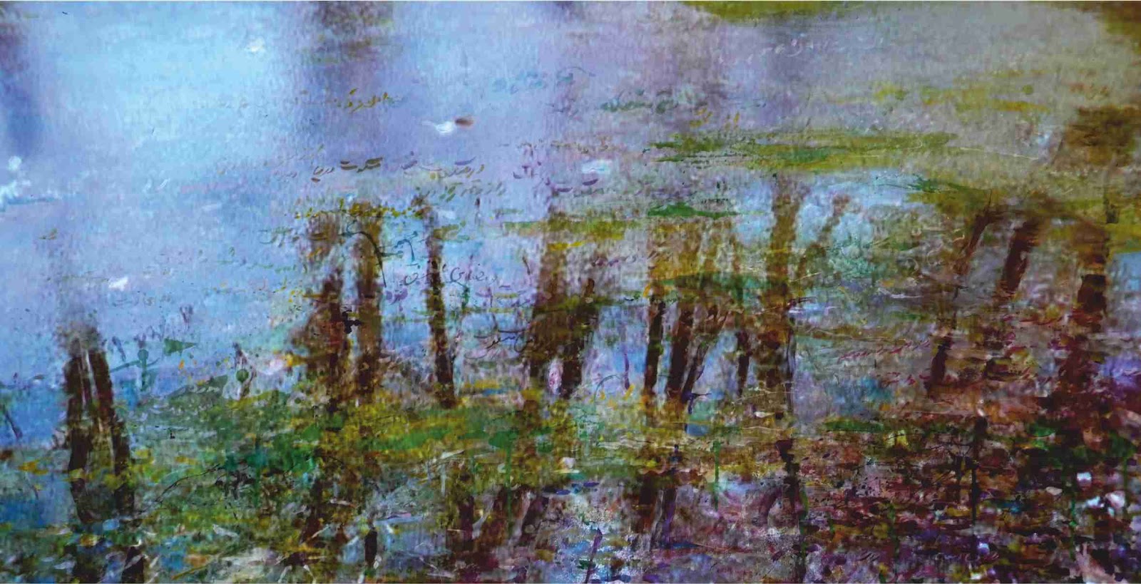Afsoon was born in Tehran in 1961. After spending her childhood in Iran, she moved to the USA in 1979, and then to the London, where she now lives and works. Occident and Orient coexist in her works which are multi layered and often combine text with images, using various media such as linocuts, photography, collage and etching. The results are rich and playful tableaux.