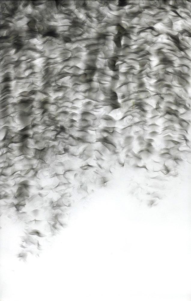 In March 2013, Arena B in Art Dubai, overwhelmed with the huge amount of art everywhere, I passed by a large painting with 3D rippled shades of grey and a space of whiteness in the background, when I read the description I was mesmerized! Shades of grey were actual smoke, not paints or digital art, but real smoke imprinted on a canvas! Just like the real scene, the smoke changes from thin soft lines, merges together to create hundreds of random figures and forms, one can never get enough of looking at it or tired from guessing what the figures can be. I couldn’t get it out of my mind since March! This timeless piece of art is by Brazilian prominent artist Shirley Paes Leme from her “Fumaça-Ação” series.