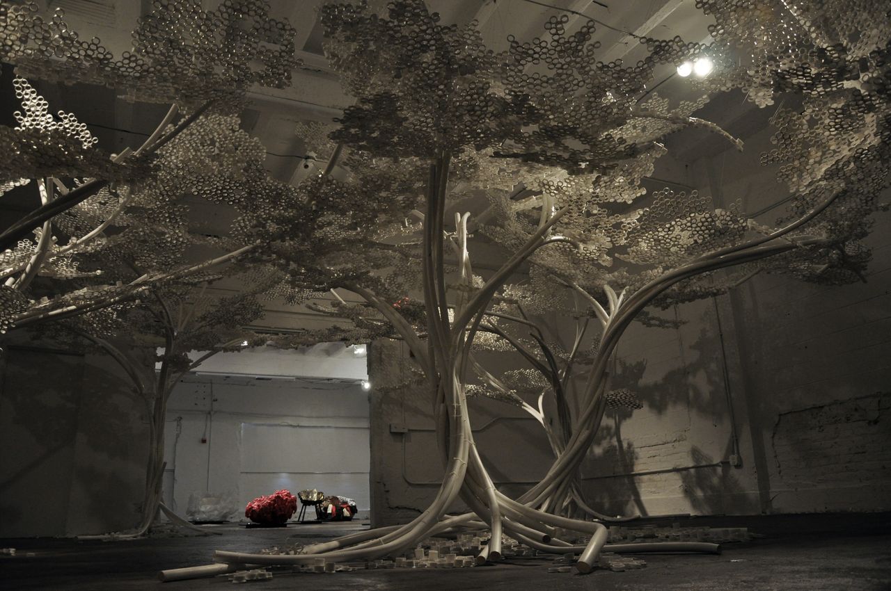 The fair will again give visitors a place to sit and absorb the fair, this time in the shade of Tom Price’s ‘PP Trysting Tree’, presented in cooperation with the British Council, as the result of many pieces of polypropylene pipe shaped into branches with blossom.