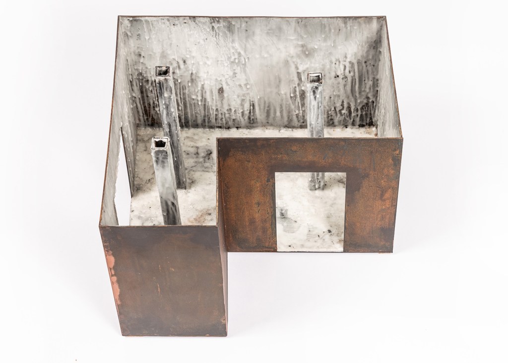 Majid Biglari tends to conceal his visual codes from the audience, encouraging them to go through a rather demanding process to make sense of it all. In “Soot, Fog, Soil,” he has assumed a similar approach, as if by sealing old immigration documents of a family on tin cans and the imaginary maps of a fictional haven, he seeks to present his audience with new questions.