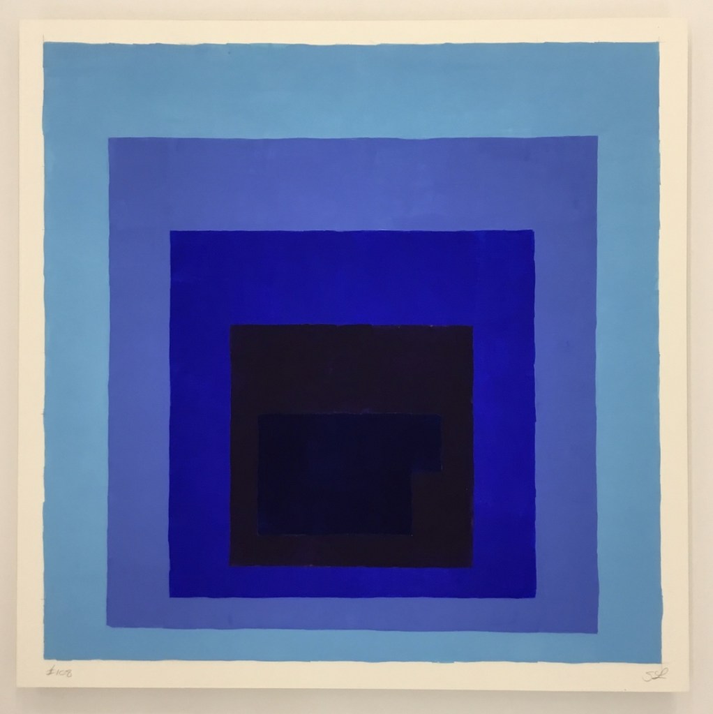 Locke’s Homage to the Auction Block (2019–present) interrogates similar themes. Re-envisioning Josef A. Albers’s 1950–1976 Homage to the Square series, these compositions mark a significant formal departure from the artist’s earlier works. Imbuing Albers’s reductive imagery with an ominous charge, Homage to the Auction Block abstracts a slave auction block to its most basic geometric silhouette—reflecting Locke’s belief that “the basic Modernist form is indeed the slave auction block.” Queering the pure formalism and color theory of Albers, Homage to the Auction Block unpicks the intertwined histories of race and modernism.