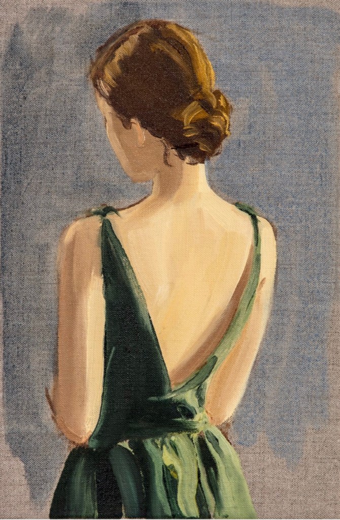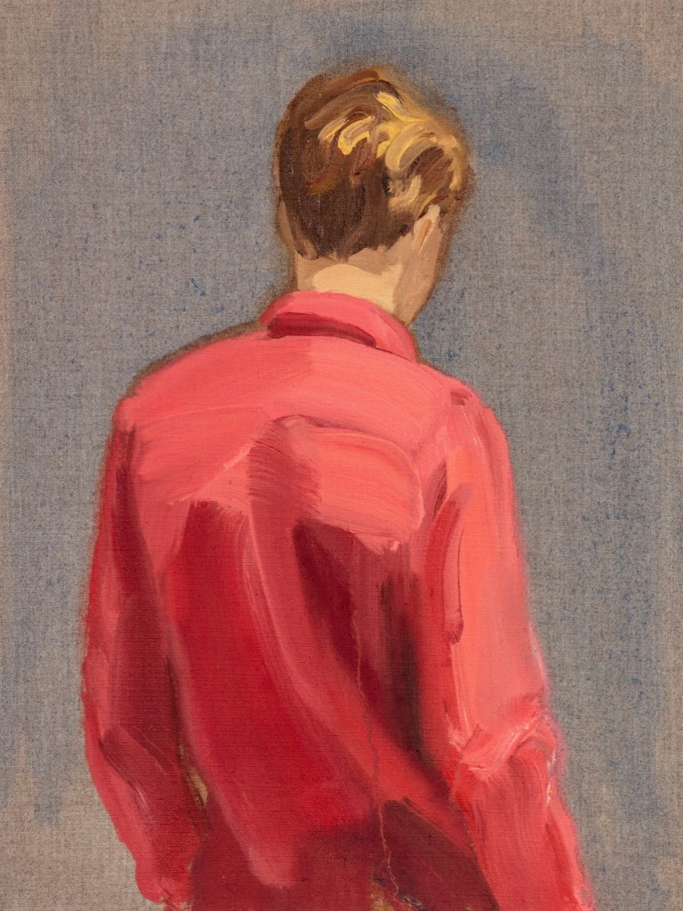 The show takes its title from two series of paintings, each group of the same subject matter: a boy in a red shirt and a young woman wearing a green dress. In each set, it’s the same clothing and same pose. Only the scale of the paintings shifts. “What surprised me, as I made them, was how different each felt. Almost as if it was the same green dress but worn by a different person,” says Rubin.