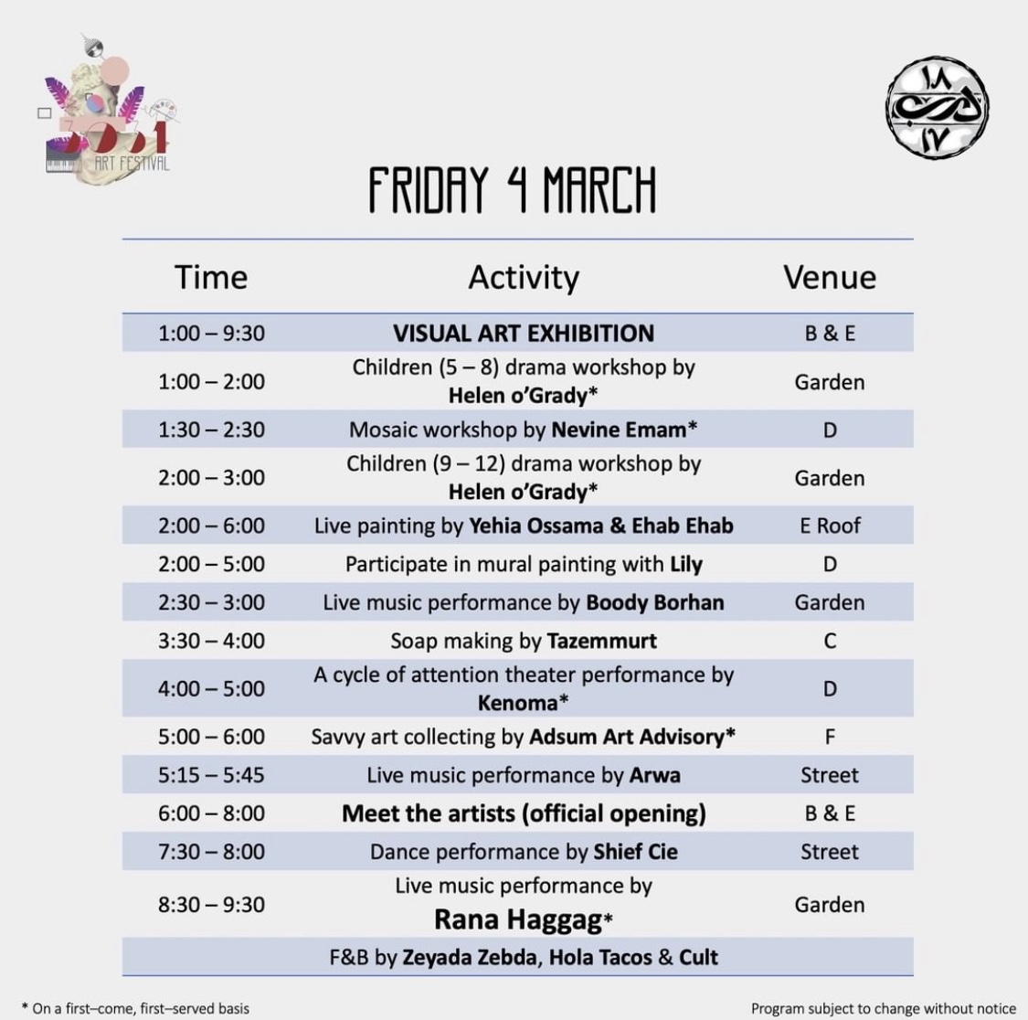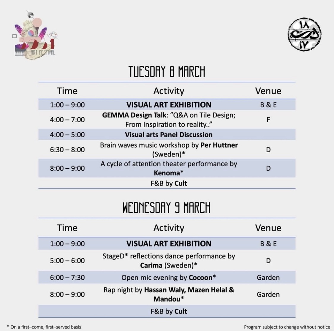 “The festival aims to engage, support, and encourage Cairo’s art community, establish a network of collaboration for both renowned and rising artists, and reintroduce audiences to the long-lost importance of an aesthetic experience,”